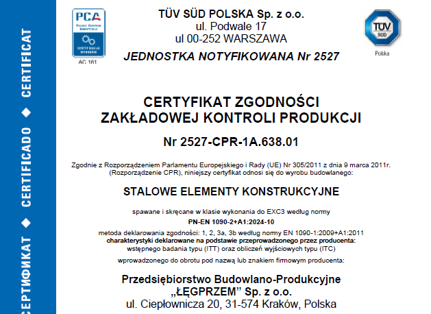 UTRZYMANIE ORAZ AKTUALIZACJA CERTYFIKATÓW WEDŁUG NORM PN-EN 1090 ORAZ PN-EN ISO 3834