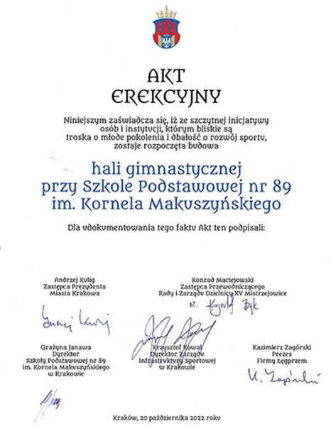 20 października 2022 r. odbyło się oficjalne wmurowanie kamienia węgielnego pod nową inwestycję w Krakowie.